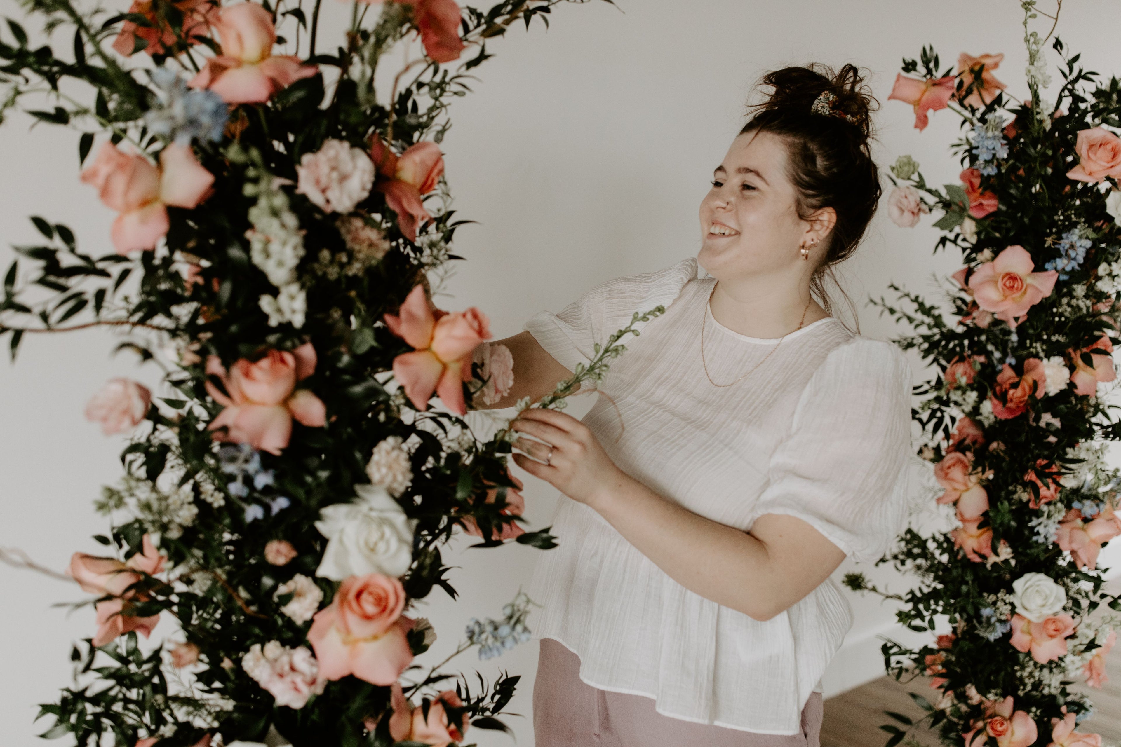 “She dropped off my bouquet early so that I could have it for photos before the ceremony and I was left speechless - the bouquet was absolutely perfect and better than I could have imagined. Walking into the venue and seeing what she had done with floral decor, I was left just as speechless - everything looked stunning and perfect, and the asymmetrical pillars she had created for our ceremony space stole the show.